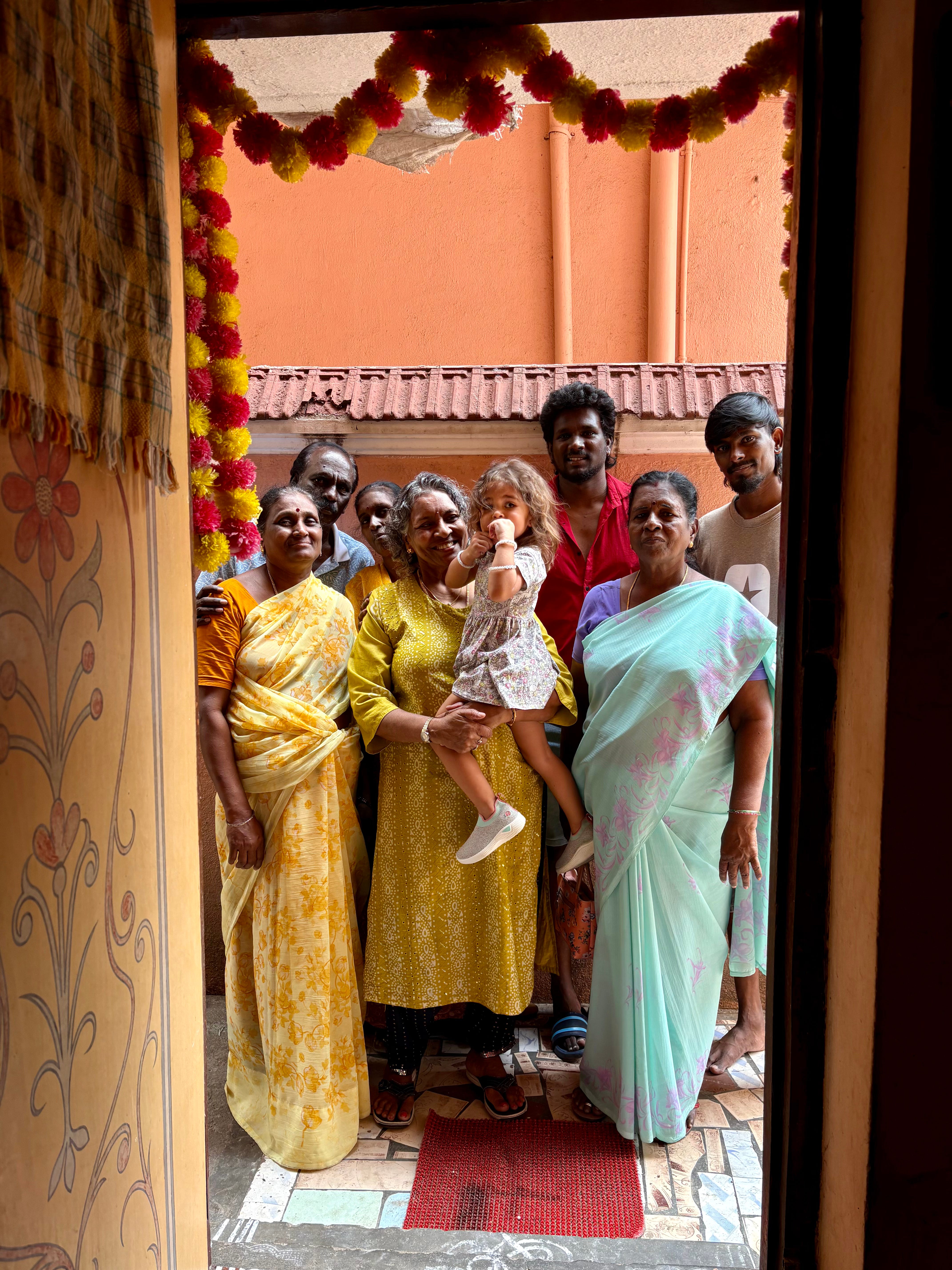We lit the lamp at the ancestral altar. We bowed. We spooned sweet, milky payasam into our mouths in remembrance. Aramara followed our gestures as if her body knew them already. Once, back in Mexico, as I dried her after a bath, she looked toward the dim rafters above us and said what sounded unmistakably like, “Grandma.” I thought immediately of Vimla — my mother’s mother — whose quiet insistence seemed to usher us here without hesitation.