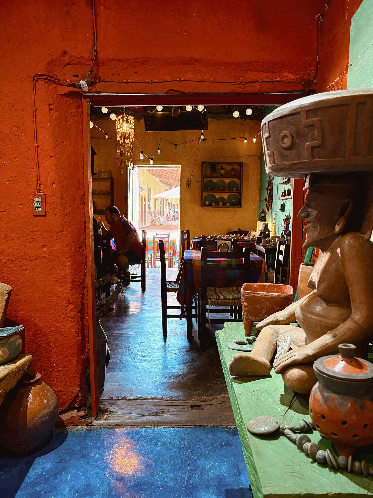By midday, when I sat down at the only outdoor table of a ceramics café run by the Tuitense pre-Hispanic potter Lili Solorio, I realized I’d left my phone at my friend’s place. Dammit. I’d already ordered chilaquiles con huevo and a pineapple juice, connected to the plaza Wi-Fi, and was in no mood to turn back. So I decided to accept my phoneless fate, resisting the urge to post a cute Instagram story that masked my foul mood.