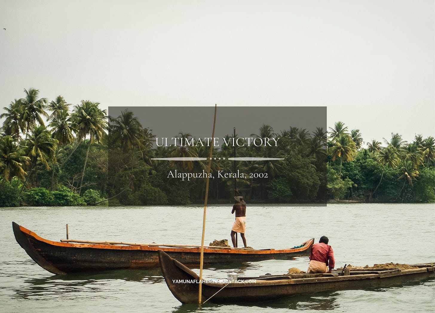 A FEW MONTHS LATER, my Australian boyfriend and I found ourselves in Alappuzha, a small Keralan town known as the “Venice of the East,” famous for its peaceful backwaters and dense green canals. It seemed an unlikely place for what awaited us: a massive anti-war demonstration. Reports estimated nearly 25,000 people would march under the blazing sun, united by a single intention—to resist the looming American invasion of Iraq.